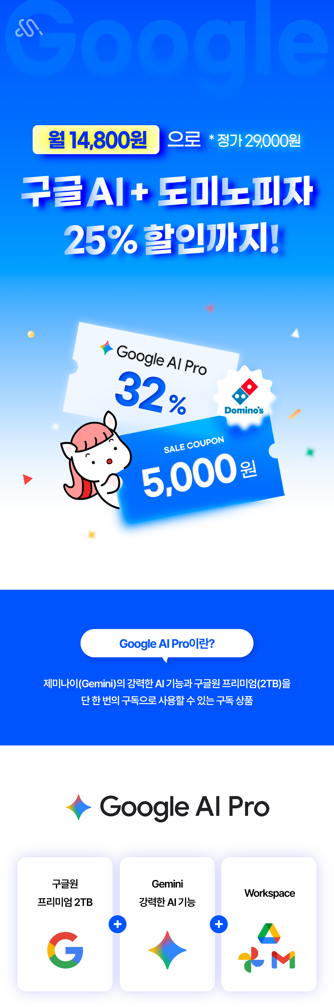 모든 요금제 가입 시 구글AI프로+도미노파자 할인 혜택