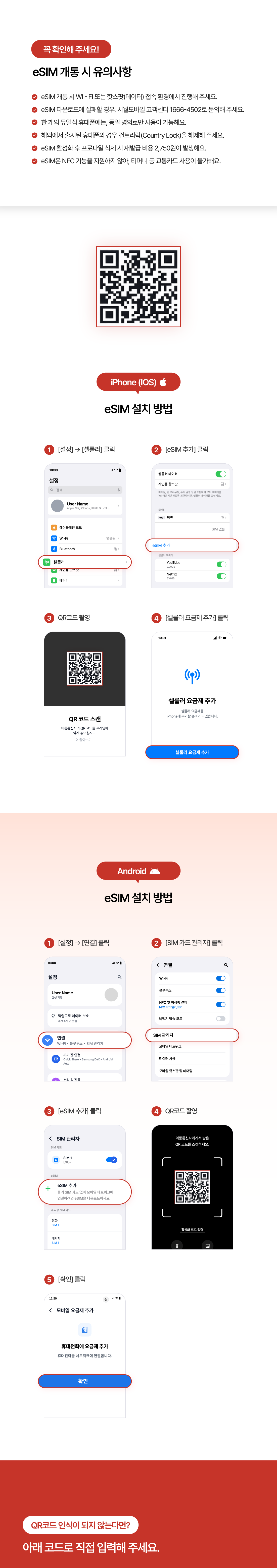 eSIM 설치 및 QR코드 안내